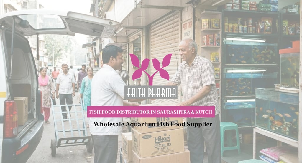 If you own a shop or an aquarium store or if you breed animals in Gujarat it is really important to find a good fish food distributor in Saurashtra and Kutch. Faith Pharma is a name that people trust when it comes to products. They supply good quality fish food for aquariums to people who buy in large quantities in Saurashtra and Kutch. Faith Pharma is a help, to people who own pet shops or aquarium stores or breed animals in these areas because they provide fish food at a wholesale price.